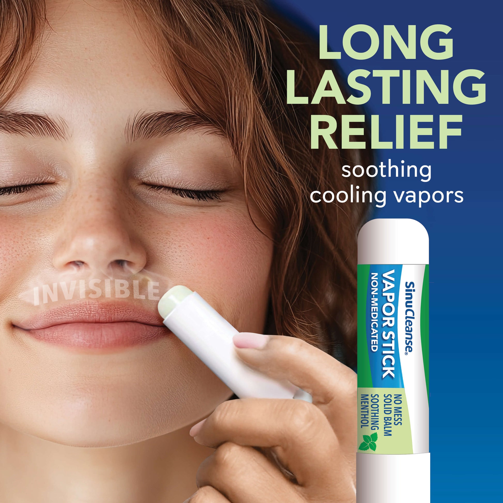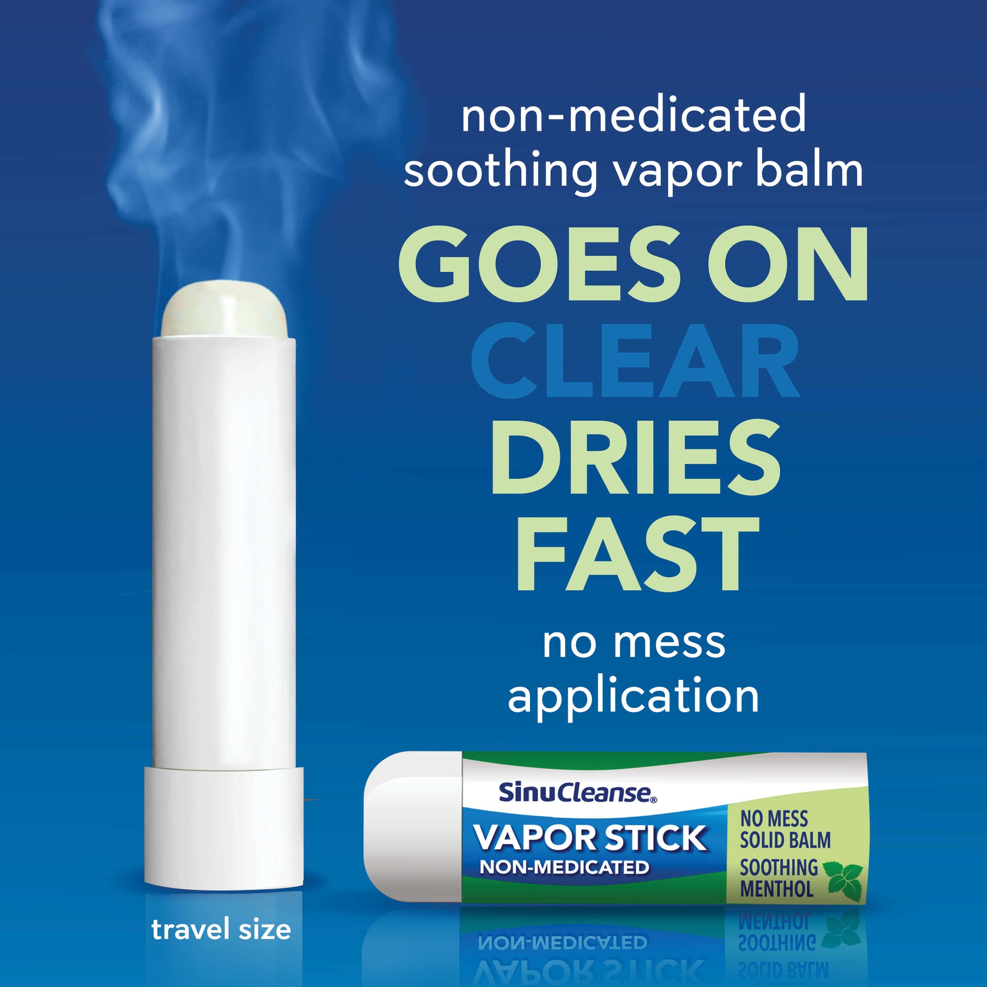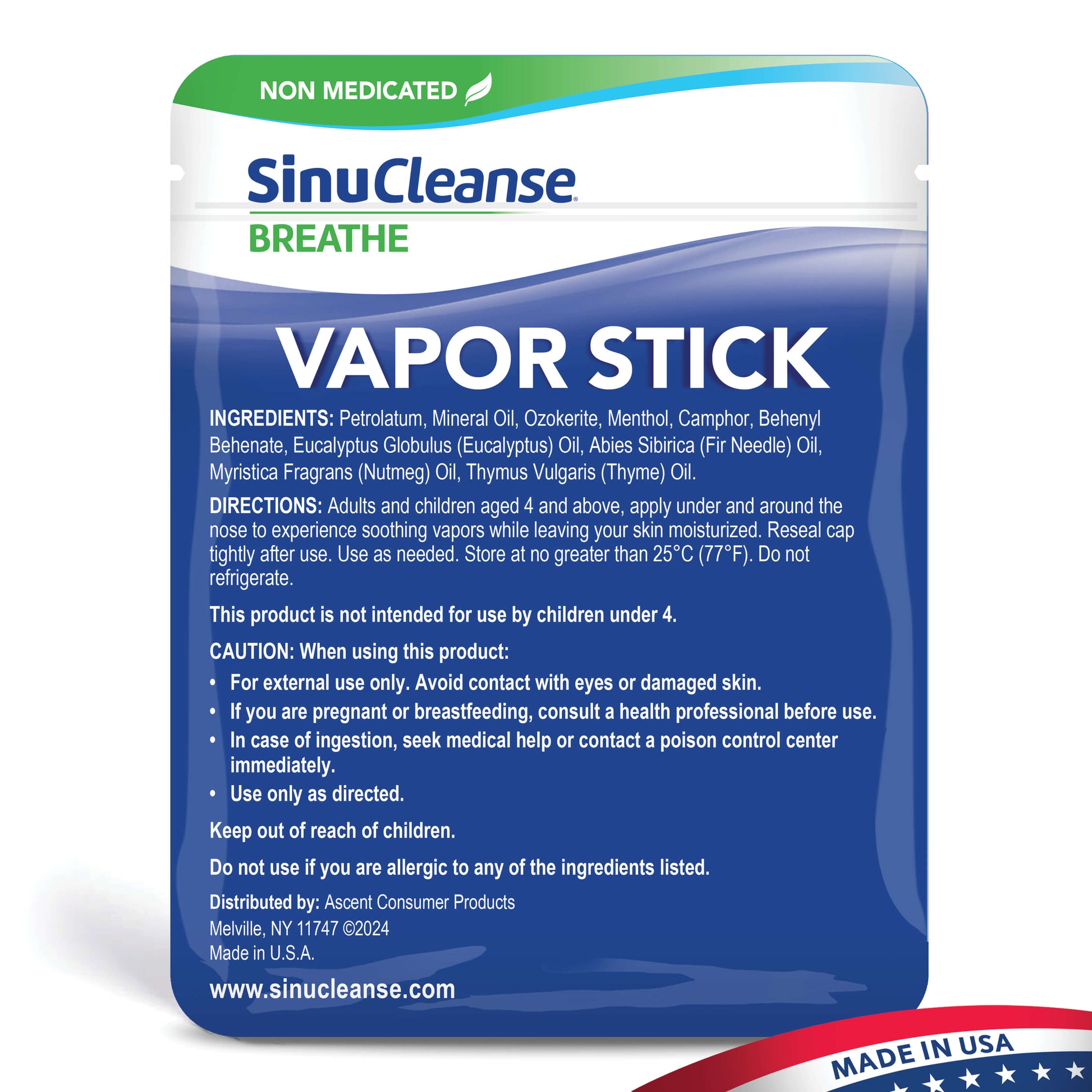 The SinuCleanse® Travel Size Vapor Stick provides quick, portable relief from stuffy noses and congestion—wherever life takes you. This compact, solid balm is enriched with soothing menthol and eucalyptus essential oils, providing non-medicated, long-lasting vapors that refresh and open up airways. The glide-on stick format is mess-free and fast-drying, so you can use it discreetly while traveling, at work, or on-the-go. It’s the natural way to breathe easier, with no spills, residue, or fuss. Made in the USA.